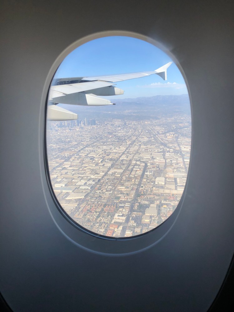 Nach einer Zwischenlandung in Paris, ging es mit dem Airbus 380 weiter nach LA. Obwohl wir uns ein wenig Sorgen machten wegen der kurzen Umstiegszeit von 1:20 in Paris, verlief alles ohne Probleme. Beim Umstieg in LA kamen wir schon mehr ins schwitzen, obwohl wir 2 1/2 Stunden Zeit hatten … Anmerkung für den nächsten Urlaub mit einmal Umsteigen in Amerika … mind. 3 1/2-4 h Umstiegszeit einplanen und lieber noch einen Kaffee trinken gehen 😀